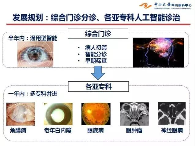 基于这一人工智能平台,中山眼科中心于2017年4月开启“眼科人工智能诊疗”,由人工智能云平台辅助临床医师进行诊疗。在人工智能门诊就诊的患者,除接受常规诊疗外,其检查数据即时同步到CC-Cruiser云平台,同时享受由人工智能机器人提供的“专家级”诊疗。
