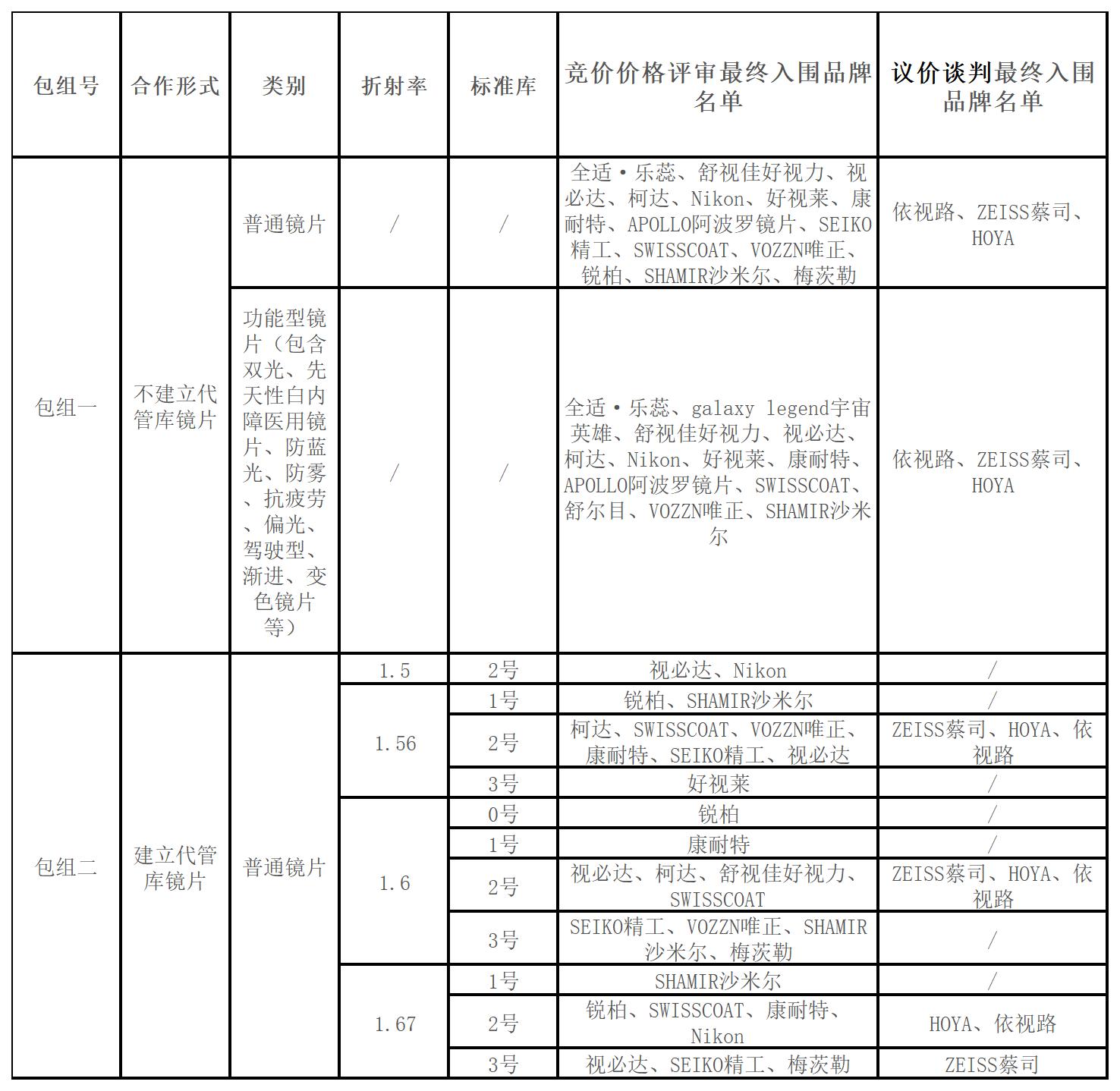 五、建库内容:采购方将在最终入库的品牌供应商中选择供货单位,产品订购权及最终解释权归广州中山眼科验光配镜有限责任公司及其关联公司所有。