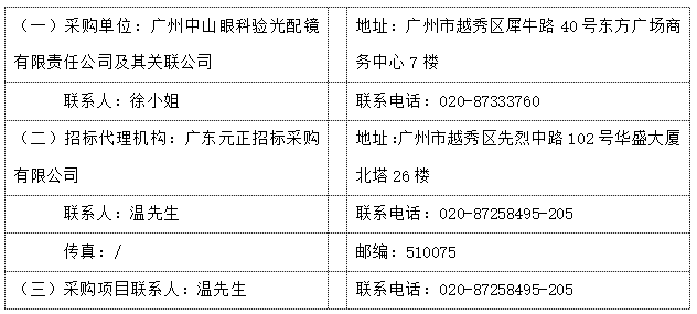 二、采购项目名称:广州中山眼科验光配镜有限责任公司及其关联公司2026年度销售产品集中建库项目(眼镜片类)