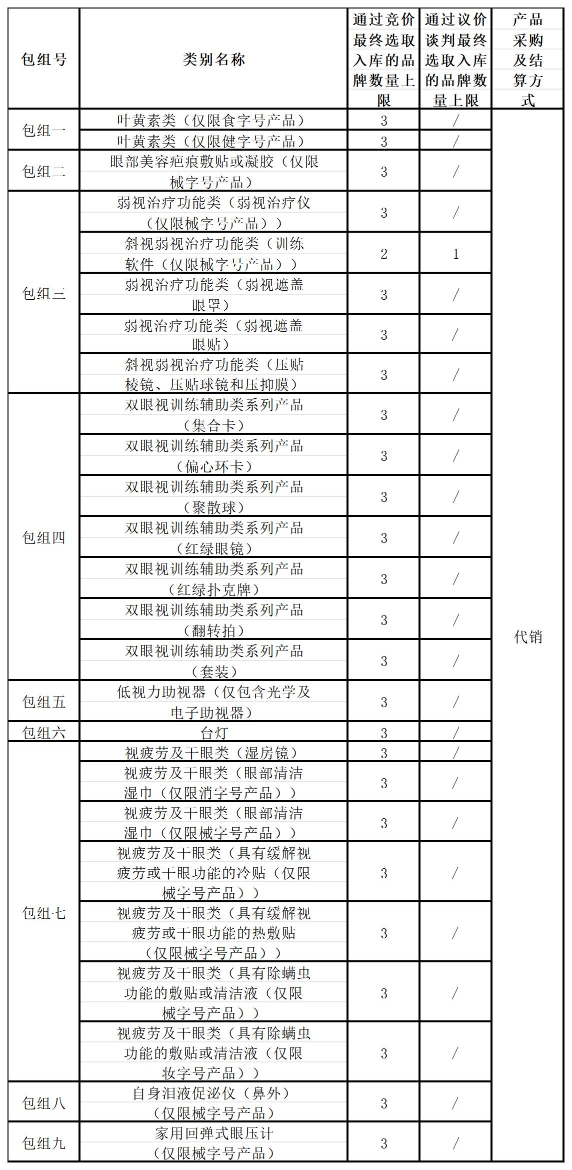 六、建库内容:采购方将直接在最终入库的品牌供应商中选择供货单位,产品订购权及最终解释权归广州中山眼科验光配镜有限责任公司及其关联公司所有。